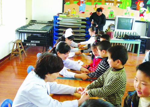 縣中醫(yī)院在關(guān)心本單位青年職工及子女成才的同時(shí),還積極組織青年志愿者進(jìn)社區(qū),進(jìn)學(xué)校和幼兒園、為青少年傳授健康知識(shí),并免費(fèi)為幼兒園小朋友體檢,受到社會(huì)各界的好評(píng)。