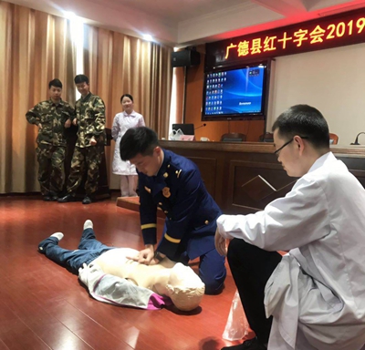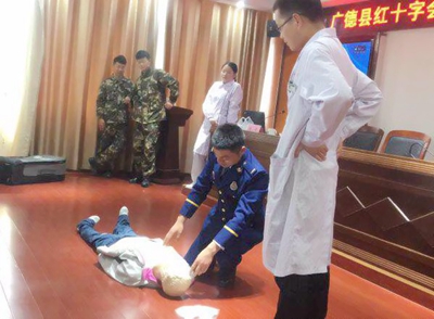 4月18日,我院受縣紅十字會(huì)邀請(qǐng)到消防大隊(duì)進(jìn)行救護(hù)員培訓(xùn)。培訓(xùn)旨在提高消防官兵在處置突發(fā)事件、意外傷害事故現(xiàn)場(chǎng)的救護(hù)能力。醫(yī)護(hù)人員結(jié)合消防隊(duì)員工作的特殊性,手把手的指導(dǎo)隊(duì)員們進(jìn)行實(shí)踐操作,為消防員進(jìn)行了創(chuàng)傷的急救技能(止血、包扎、固定、搬運(yùn))、心肺復(fù)蘇現(xiàn)場(chǎng)示范演練,使大家了解急救的整個(gè)過(guò)程。醫(yī)護(hù)人員舉一反三、細(xì)心講解;學(xué)員認(rèn)真聆聽(tīng)、不懂就問(wèn),大家互相探討,學(xué)習(xí)氣氛熱烈。