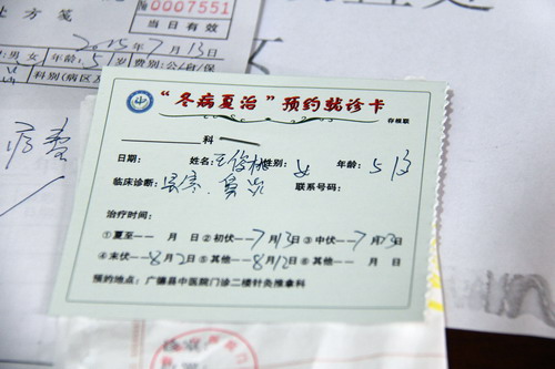 “前面還有30多個(gè)號(hào)?上午來(lái)得及看嗎?不行的話我下午再來(lái)?”昨日上午9點(diǎn)多,在針灸推拿科,一位市民擠在人群中詢問(wèn)醫(yī)護(hù)人員。昨日是初伏,也是我院一年一度的“冬病夏治”活動(dòng)開(kāi)診日,上午八點(diǎn),前來(lái)敷貼的患者已排起長(zhǎng)隊(duì)。當(dāng)日針推科接待患者近三百人,包括年僅幾個(gè)月的幼兒及八十余歲的老人。