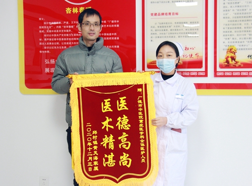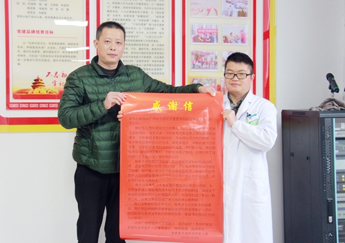 今天上午,兩名患者家屬帶著錦旗和感謝信找到院長(zhǎng)辦公室,激動(dòng)地說(shuō):“多虧了你們醫(yī)院ICU的醫(yī)護(hù)人員,我父親才能活下來(lái),感謝你們給了我父親第二次生命,衷心感謝他們的精湛醫(yī)術(shù)和崇高醫(yī)德!”原來(lái)這兩名家屬的父親因重度有機(jī)磷農(nóng)藥中毒,在我院ICU經(jīng)過(guò)18天的精心救治,于今日上午順利出院。