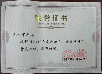 表彰大會上,我院骨傷科陳鵬、放射科毛友軍、康復(fù)科趙龍、重癥醫(yī)學(xué)科程衛(wèi)科四位同志被評為縣“最美醫(yī)生”。(五病區(qū)潘虹、院辦陳希)
