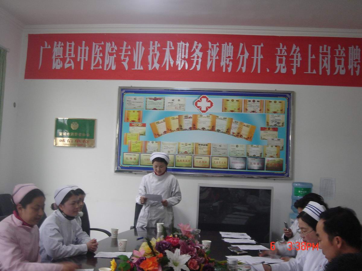 新年伊始,廣德縣中醫(yī)院為使醫(yī)院醫(yī)療工作再上新臺階,努力打造優(yōu)秀人才競爭上崗平臺,在全院范圍內(nèi)開展了中級職稱競爭上崗活動;顒油ㄟ^演講比賽、業(yè)務(wù)知識答辯等形式對醫(yī)務(wù)人員進行了整體素質(zhì)考核。在激烈的競爭中,最后有5位醫(yī)務(wù)人員以優(yōu)異的成績成功晉升。此次活動促進了中醫(yī)院全體醫(yī)務(wù)人員積極向上,努力進取的工作熱情,為中醫(yī)院再創(chuàng)輝煌打下了堅實的基礎(chǔ)。 (圖為競爭上崗竟聘現(xiàn)場) ( 陳靈香)
