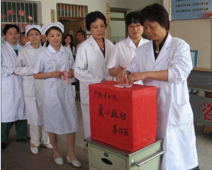 5月15日10點鐘,在廣德縣中醫(yī)院大廳內,這里的醫(yī)務人員自發(fā)地組織了捐款儀式,現(xiàn)場共募捐15445元。醫(yī)務人員的行為深深打動了在場人員,一些前來就診的患者和家屬,他們也紛紛加入獻愛心的隊伍中來。(徐林)