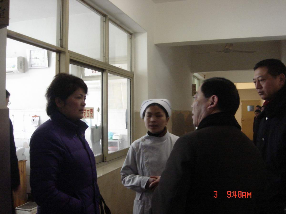 2月1日,副縣長馬群在衛(wèi)生局韓局長的陪同下,頂風(fēng)冒雪,來到縣中醫(yī)院檢查指導(dǎo)防雪救災(zāi)和安全生產(chǎn)工作。馬縣長一行 對中醫(yī)院防雪救災(zāi)工作給予了充分肯定,并指出防雪救災(zāi)工作是當(dāng)前的重中之重,醫(yī)院的全體醫(yī)務(wù)工作者務(wù)必要高度重視,隨時做好應(yīng)對即將來臨的強(qiáng)降雪工作,切實做好醫(yī)療安全和防雪救災(zāi)。(陳靈香)