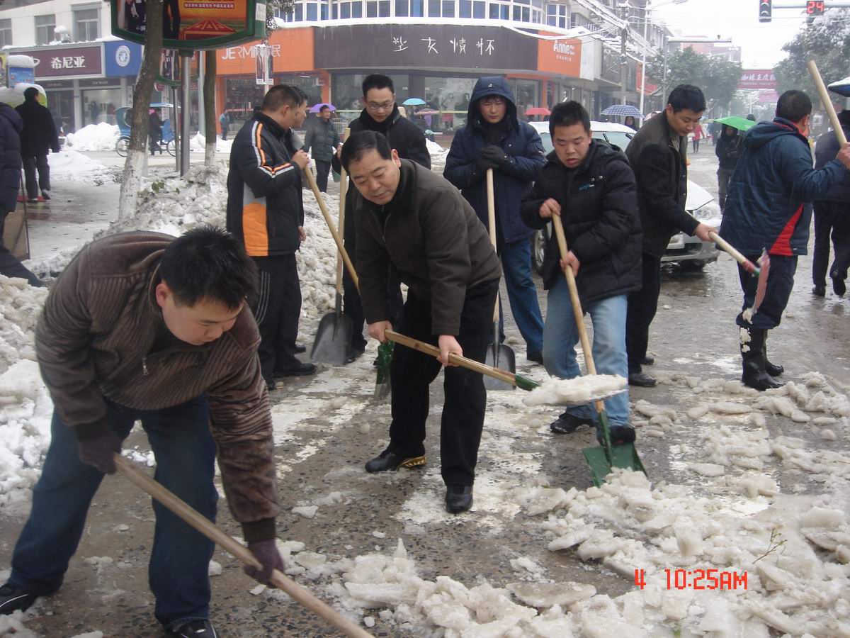 連日來(lái)的大雪和積雪給廣德縣人民出行帶來(lái)很多不便,為保證道路暢通無(wú)阻,廣德縣中醫(yī)院積極組織醫(yī)務(wù)人員義務(wù)上街掃雪。上午10點(diǎn)30分,記者聞?dòng)崄?lái)到廣德縣團(tuán)結(jié)路,只見中醫(yī)院的10多位同志已經(jīng)在這里干得熱火朝天。路上的雪經(jīng)車輛碾壓、夜晚凝結(jié)已經(jīng)變成了堅(jiān)硬的雪冰。他們先用鐵锨將冰一塊塊地撬動(dòng),然后再鏟到路的兩邊堆放……由于天寒地凍,不少人的臉和手都凍紅了,但他們?nèi)徊活,一個(gè)個(gè)干勁十足。其情其景溫暖人心!
