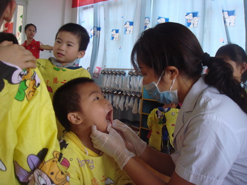 據(jù)了解,今年9月20日是全國(guó)第21個(gè)“愛(ài)牙日”,今年愛(ài)牙日的主題是:“維護(hù)口腔健康,提高生命質(zhì)量。”口腔科以實(shí)際行動(dòng)普及口腔衛(wèi)生知識(shí),在活動(dòng)中,不僅仔細(xì)地為400余名幼兒檢查牙齒,詳細(xì)地講解如何保護(hù)口腔牙齒,防止蛀牙等基本常識(shí),發(fā)放牙齒保健宣傳手冊(cè)1000份,而且還為患有蛀牙的孩子們建立了健康檔案。