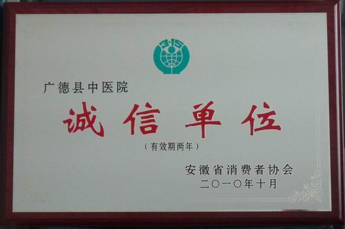 縣中醫(yī)院榮獲省級(jí)消費(fèi)者“誠(chéng)信單位”(圖文)