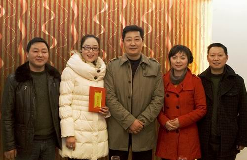縣委宣傳部副部長王浩明(中)與后勤組領(lǐng)隊和工作人員合影