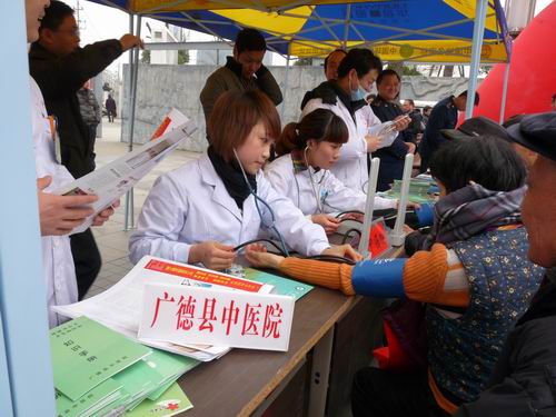 “給我也量一下,我的血壓有點(diǎn)高……”“別急,慢慢來,會給您檢查的……”前來就診的患者絡(luò)繹不絕,義診桌前坐滿了來就診的患者,醫(yī)護(hù)人員一邊認(rèn)真地給群眾檢查身體,一邊耐心地解答大家提出的疑難問題。