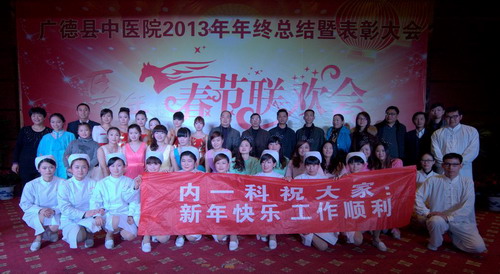 為全面總結(jié)2013年工作,科學(xué)規(guī)劃2014年工作任務(wù)。元月24 日下午, 我院在橫山賓館隆重召開“2013年度總結(jié)表彰大會暨2014年春節(jié)聯(lián)歡會”?h委常委、宣傳部長劉群,縣人大常委會副主任陶崇林,副縣長邱型軍,衛(wèi)生局局長袁順剛,副局長張先明,院長周永富,副院長肖為民、蔡明燕出席了會議,部分干部職工共200余人參加了會議。會議由副院長蔡明燕主持。