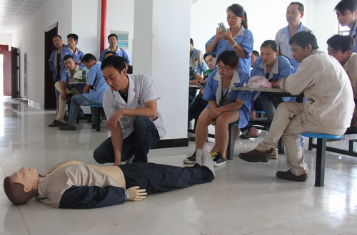 18日,我院組織急診科醫(yī)護(hù)人員,攜帶模擬人和急救器材來到開發(fā)區(qū),通過示范講解和情景再現(xiàn)等方式,為工人們免費(fèi)上了一堂急救知識(shí)技能培訓(xùn)課。(陳希/圖、文)