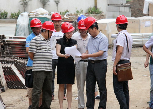 現(xiàn)場正在緊張施工中,許縣長對照圖紙,詳細(xì)了解醫(yī)院建設(shè)規(guī)模、工程進(jìn)度、質(zhì)量監(jiān)管等情況。在聽取了我院領(lǐng)導(dǎo)匯報(bào)的工程建設(shè)進(jìn)展情況后,對新址建設(shè)工作給予充分肯定,并就下一步項(xiàng)目建設(shè)工作提出了要求。許縣長要求,一是要確保工程質(zhì)量。醫(yī)院、監(jiān)管單位和建設(shè)單位要形成監(jiān)管機(jī)制,并相互配合,確保工程質(zhì)量。二是要注重安全。要始終把安全放在第一位,要始終堅(jiān)持“把安全記在心中,質(zhì)量握在手中”。三是要加快工程進(jìn)度。在確保工程質(zhì)量的基礎(chǔ)上抓緊時(shí)間,科學(xué)安排調(diào)度,高標(biāo)準(zhǔn)搞好項(xiàng)目建設(shè)。