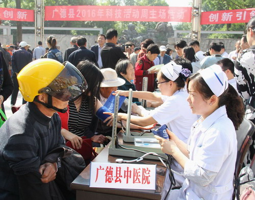 5月14至21日為全國(guó)科技活動(dòng)周,今年科技活動(dòng)周的主題是“創(chuàng)新引領(lǐng) 共享發(fā)展”。為大力弘揚(yáng)科學(xué)精神、普及健康科普知識(shí),5月12日上午,縣中醫(yī)院組織醫(yī)護(hù)人員參加了在夫子廟廣場(chǎng)舉辦的全縣科技活動(dòng)周宣傳義診活動(dòng)。