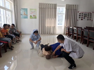 8月 1 日,"未成年人急救知識講座" 公益培訓(xùn)活動在紅旗社區(qū)舉行,來自中醫(yī)院的多名醫(yī)護(hù)人員在急診科主任梅峰的帶領(lǐng)下,攜帶演練器械和急救用品,給社區(qū)的小朋友們帶來了一堂通俗易懂、簡單實(shí)用的醫(yī)療急救體驗(yàn)課。每個人都在醫(yī)務(wù)人員指導(dǎo)下,在模擬場景下親身體驗(yàn)了實(shí)施心肺復(fù)蘇及嚴(yán)重氣道異物梗阻搶救時需要使用的動作及注意的要點(diǎn)。