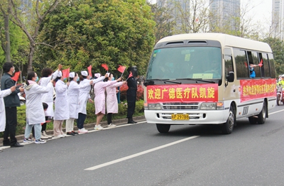 4月10日17時,迎接我市第一批支援湖北醫(yī)療隊的車隊緩緩?吭谑行l(wèi)健委大樓前,我院支援湖北護士袁華作為全市最早一批支援湖北的醫(yī)護人員,也終于踏上了這片熟悉的土地。