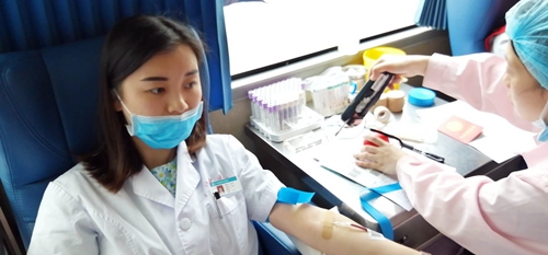 在現(xiàn)場(chǎng),獻(xiàn)血者分批有序地填寫登記表、測(cè)量血壓、抽血化驗(yàn)等。這些可愛的白衣天使,在疫情防控工作中,不僅是最美的“逆行者”,同樣也是愛心滿滿的無償獻(xiàn)血者,他們用實(shí)際行動(dòng)踐行著“救死扶傷,大愛無疆”的職業(yè)精神。我院康復(fù)科醫(yī)師張夏妍說:“在疫情期間參加這次獻(xiàn)血,是一件很光榮的事情,我也很開心能為祖國做一點(diǎn)小小的貢獻(xiàn)。”(院辦陳希)