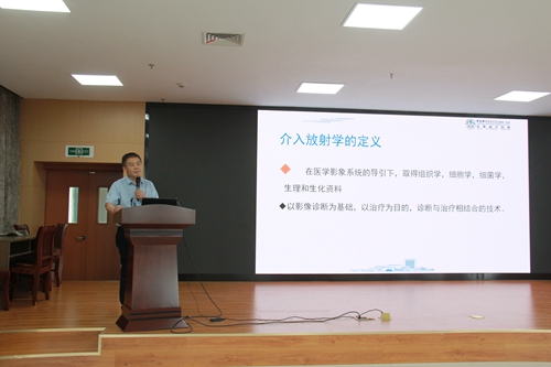 培訓(xùn)會(huì)在中醫(yī)院六樓會(huì)議室舉行,呂維富教授詳細(xì)主講了《介入放射學(xué)在臨床中的應(yīng)用》,并就介入放射學(xué)的概念、應(yīng)用范疇、應(yīng)用優(yōu)點(diǎn)以及手術(shù)所需的器材進(jìn)行了仔細(xì)的分析、講解,并通過(guò)PPT放映了大量手術(shù)事例。張萬(wàn)高教授講解了《介入微創(chuàng)技術(shù)在血管及疼痛性疾病中的應(yīng)用》,他首先介紹了血管和疼痛性疾病發(fā)生的誘因、類別和癥狀,并主講了血管和疼痛性疾病的微創(chuàng)介入治療的應(yīng)用范圍。