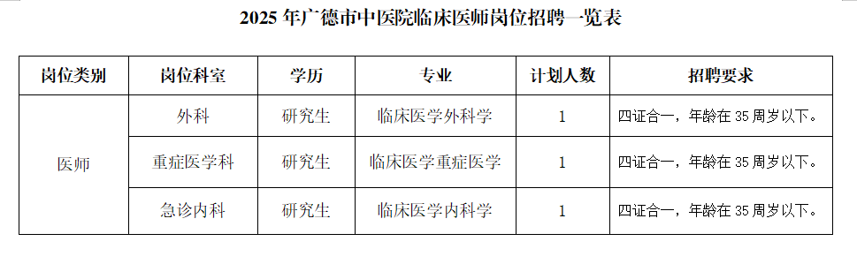 廣德市中醫(yī)院臨床醫(yī)師招聘公告