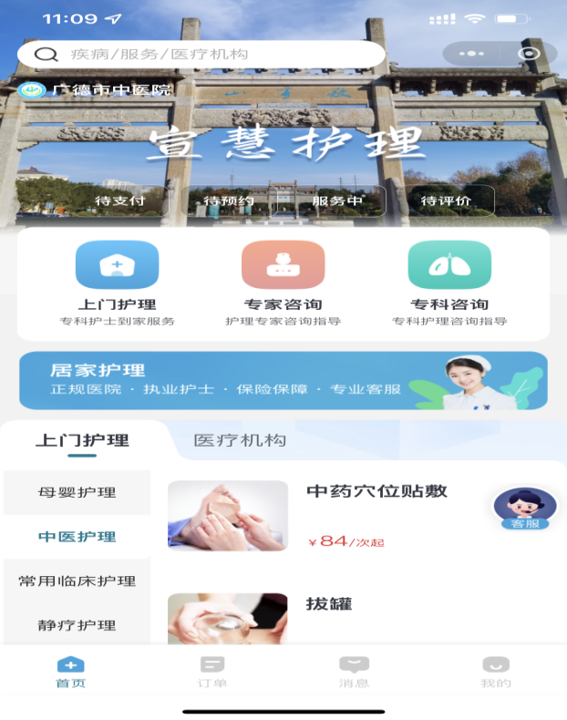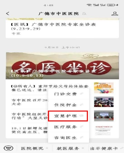 方法二 關(guān)注廣德市中醫(yī)醫(yī)院公眾號(hào)進(jìn)入“宣慧護(hù)理”小程序