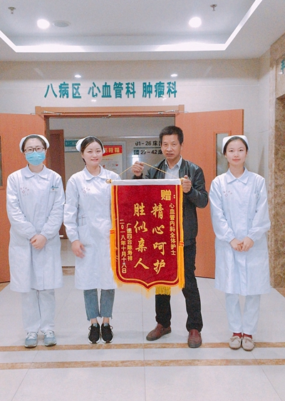 據(jù)了解,徐壽祥的父親徐大爺,家住四合鄉(xiāng),今年78歲,于今年6月12日在銀行取錢時突發(fā)意識不清,由120緊急送至我院就診,查出是右側丘腦腦出血,病情兇險,先后在我院重癥醫(yī)學科、心內(nèi)科接受過治療,現(xiàn)已好轉出院回家休養(yǎng)。其兒子徐壽祥說:“我父親以前就有高血壓病病史,之前也有過一次中風病史,后來雖然好轉了,回家也一直在吃降壓藥,但老爺子就嗜好點小酒,怎么勸也不愿戒,所以血壓一直控制的不是很好,這不,一下就又中風了,差點命都沒了,還好在重癥醫(yī)學科程主任醫(yī)護團隊盡心竭力的搶救治療和心內(nèi)科醫(yī)師及護士們的悉心照料下,我父親才能再次獲得一次新生,讓我又能好好的盡盡孝心了,真的很感謝他們,他們真是醫(yī)德高尚、救死扶傷的白衣天使。”在對徐大爺治療情況深入了解后發(fā)現(xiàn),徐大爺在住院治療期間,多次出現(xiàn)過危及生命的情況,在兩科醫(yī)護人員的盡心搶救治療及精心的呵護下,徐大爺最終轉危為安,身體好轉后,10月15日,一家人開開心心的將徐大爺接回家休養(yǎng)。