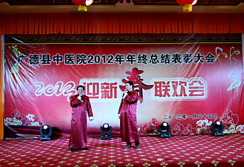 隨后,我院2013年度迎新春聯(lián)歡會在小合唱《我們是廣德中醫(yī)院人》拉開了序幕。相聲《形象代言人》詼諧幽默,讓人忍禁不;印度舞《天竺少女》使晚會充滿異域風(fēng)情;黃梅戲獨唱《到底人間歡樂多》又體現(xiàn)出傳統(tǒng)文化的博大精深。