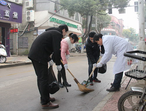 春節(jié)將至,為響應(yīng)縣工委號(hào)召,深入開(kāi)展“紅紅火火過(guò)大年”黨員志愿服務(wù)活動(dòng)。1月31日,我院黨支部組織8名黨員志愿者參加義務(wù)掃大街活動(dòng),重點(diǎn)對(duì)升平街路段進(jìn)行了清掃。(陳希/圖、文)
