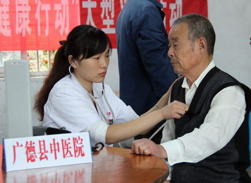 為東亭鄉(xiāng)敬老院的老人檢查身體