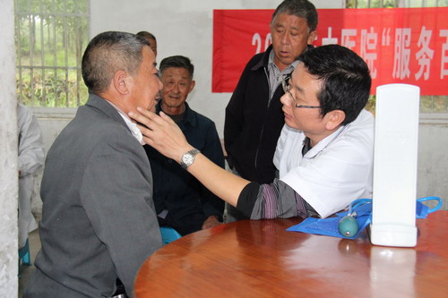 9月19日,我院抽調(diào)內(nèi)科、外科、兒科、中醫(yī)科等各科室專家深入到柏墊鄉(xiāng)、東亭鄉(xiāng)及敬老院開展“服務(wù)百姓健康行動(dòng)”大型義診活動(dòng),為數(shù)百名村民細(xì)心地問診、檢查,廣泛傳播中醫(yī)藥的醫(yī)療衛(wèi)生保健知識(shí)。在東亭鄉(xiāng)敬老院,醫(yī)護(hù)人員為老人們送去了水果及保健品,為老人們測(cè)量血壓、檢查身體健康狀況。