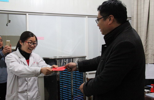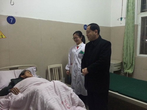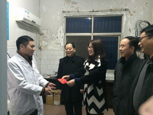 2015年除夕之夜,萬家團圓之際,迎著濃濃的年味,周永富院長帶領辦公室、醫(yī)務科、總務科等職能科室負責人深入到醫(yī)技和臨床科室,慰問了春節(jié)仍在崗位辛勤工作的職工,同時還探望了春節(jié)留院的病人,為他們送去了新春的美好祝愿。